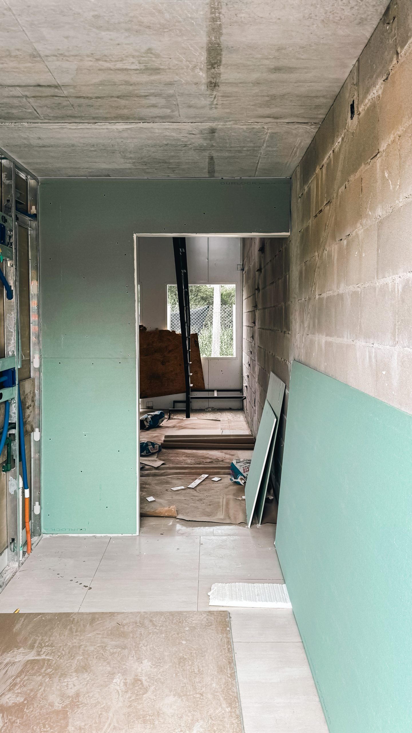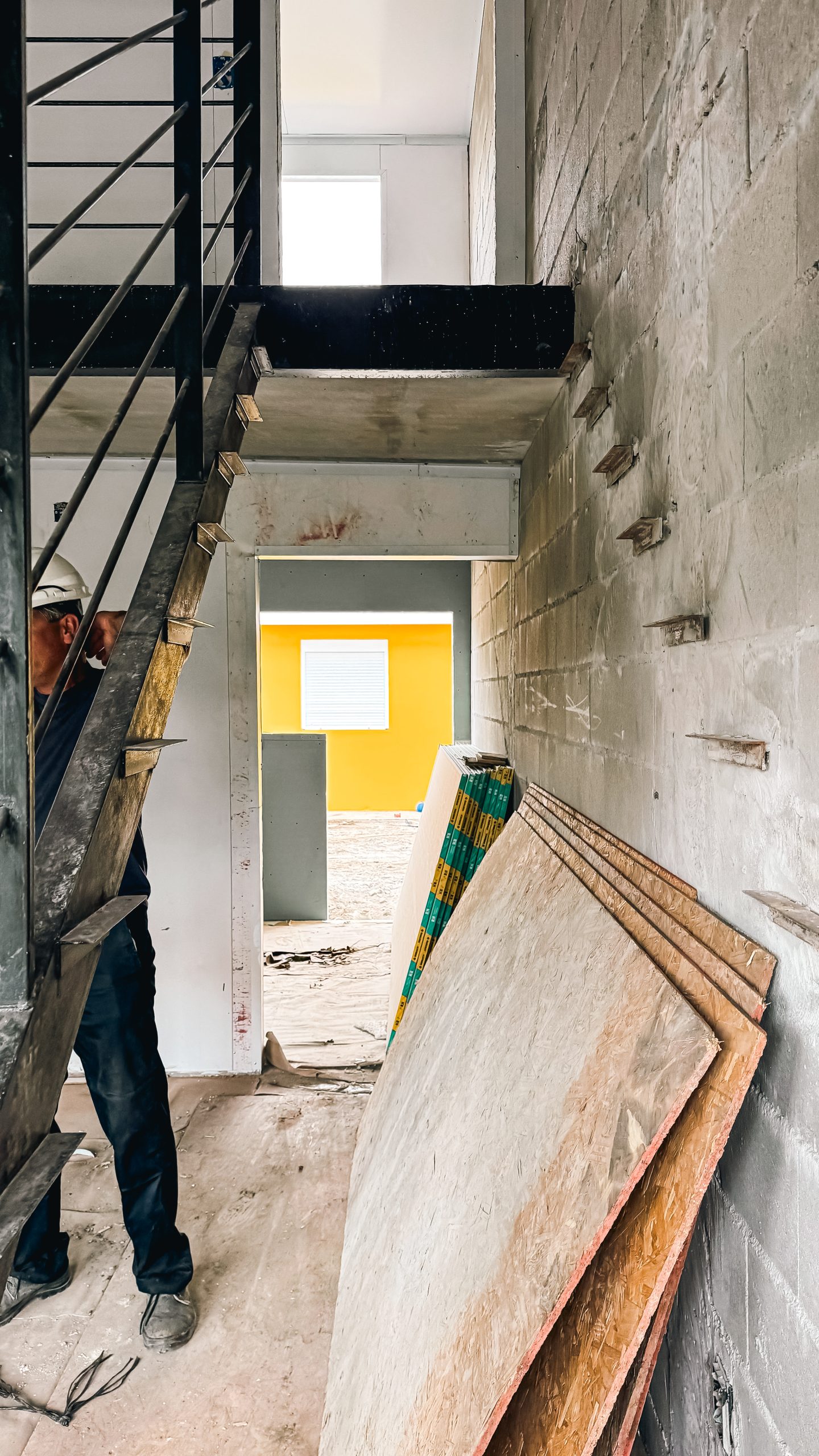 Ejecución de emplacado integral en placas de yeso y trabajos de pintura para las viviendas del Plan Juntos en el barrio de Piedras Blancas durante el 2025.