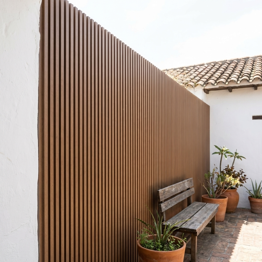 Su terminación aporta un aspecto cálido y natural similar a la madera tradicional, pero con una estabilidad mucho mayor. No se pudre, no se hincha y no se astilla, lo que lo convierte en una opción superior para proyectos residenciales y comerciales que buscan una estética moderna con un mantenimiento mínimo.