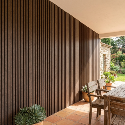 Su terminación aporta un aspecto cálido y natural similar a la madera tradicional, pero con una estabilidad mucho mayor. No se pudre, no se hincha y no se astilla, lo que lo convierte en una opción superior para proyectos residenciales y comerciales que buscan una estética moderna con un mantenimiento mínimo.